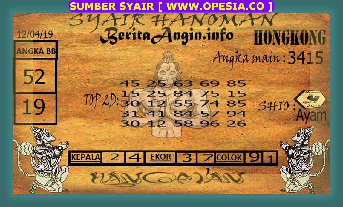 Kode syair hk Jumat 12 April 2019 GOsyair SEDIA KODE SYAIR SGP ADA