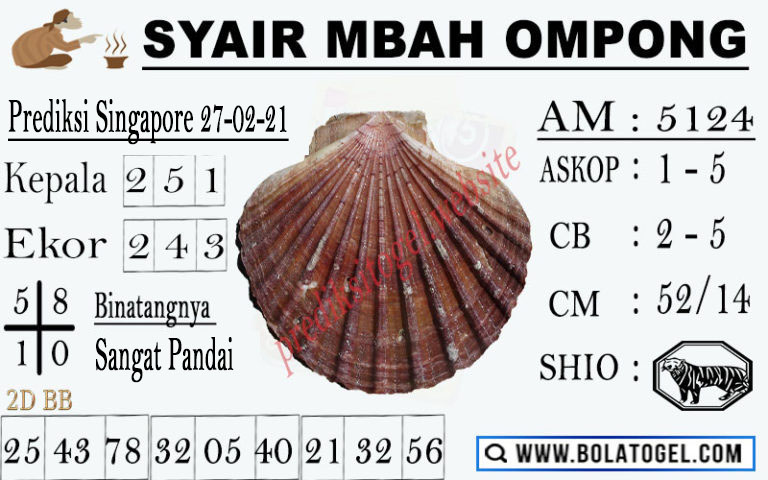 Kode syair sgp 27 februari 2022, prediksi sgp 27 februari 2022, forum syair sgp hari ini, bocoran nomor keluaran sgp dan prediksi sgp hari ini di angkaghoib. Jika cocok silahkan di ikuti: Live draw sgp memuat hasil pemutaran togel singapura resmi dari www.singaporepools.com.sg milik pemerintah singapura yang biasa disebut sgp 49. Prediksi Kode Syair Sgp 27 Februari 2022 Sama dengan Forum Code syair sgp Ronggolawe hari ini terbaru.. Sudah biasa di googling oleh banyak orang untuk memprediksikan nomor keluar togel singapore. Meskipun begitu tidak sedikit juga Pencari prediksi jitu yang suka mengunakan prediksi Syair tersebut sebagai perbandingan mereka untuk mencari angka jitu.